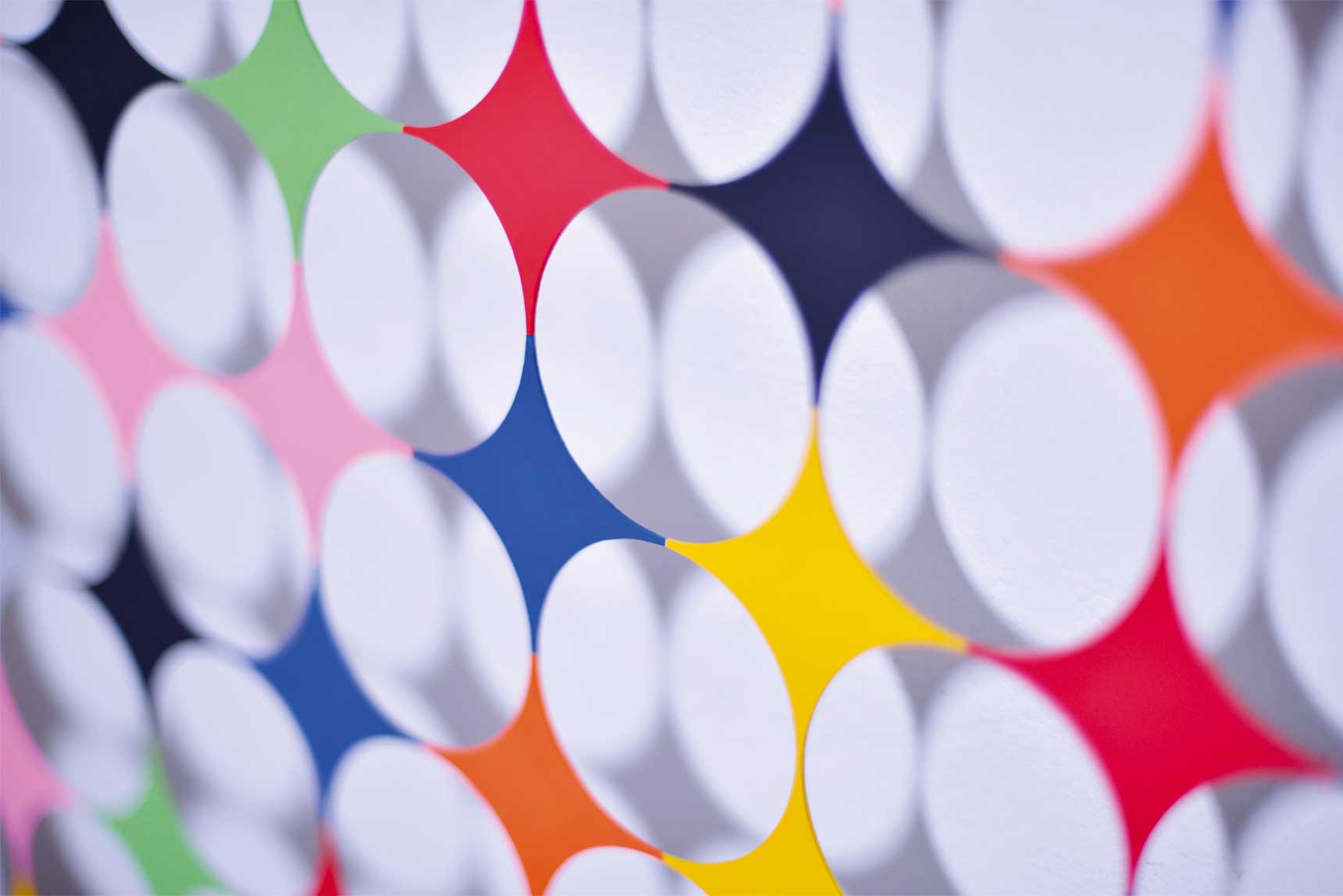 De l’abstraction géométrique à l’art cinétique, le mouvement, la couleur et la lumière construisent les œuvres très graphiques d’Arièle Rozowy.
