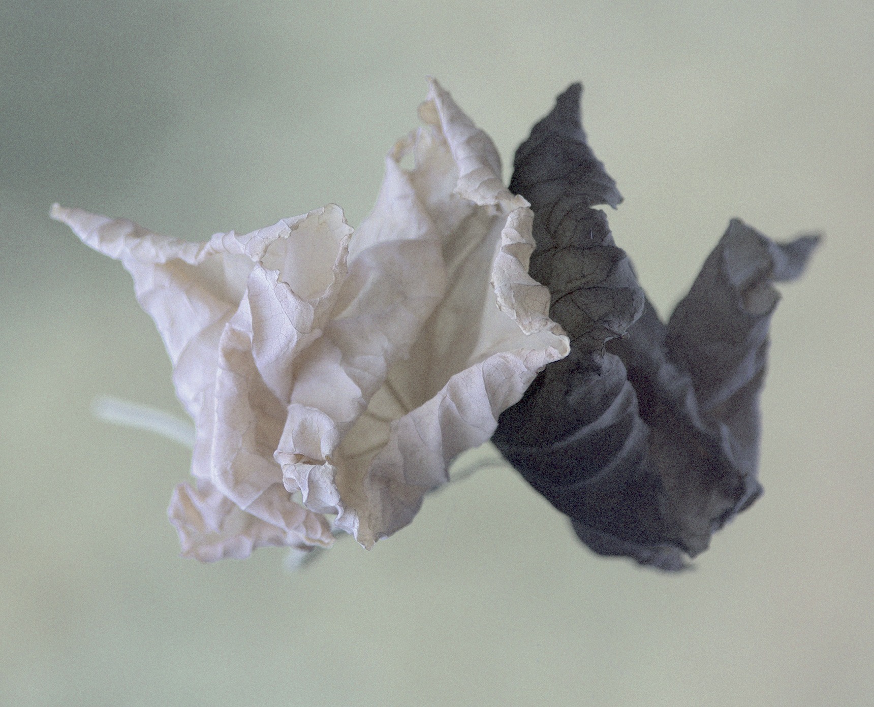 Dans le sillage de ses autres célébrations esthétiques de la fêlure et du déclin (murs écaillés de maisons abandonnées, vieux tracteurs rouillés, etc.), cette artiste nous propose de s’arrêter cette fois-ci sur de petites choses légères… en suspension. « Ces petites choses intimes et précieuses à la fois, sont le butin quotidien que je collecte dans mon jardin, véritable paradis terrestre de tous les sens. Leur laisser encore une respiration, une parenthèse décolorée. Il ne s’agit pas d’immortaliser mais de dire l’instant, l’émotion. En se jouant des matières, des reflets, des couleurs, de l’apesanteur pour créer une atmosphère poétique ». Des clichés comme autant de prises d’un chasseur de papillons entre les mailles de son filet. Mais chut !