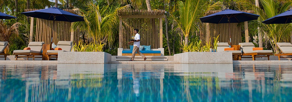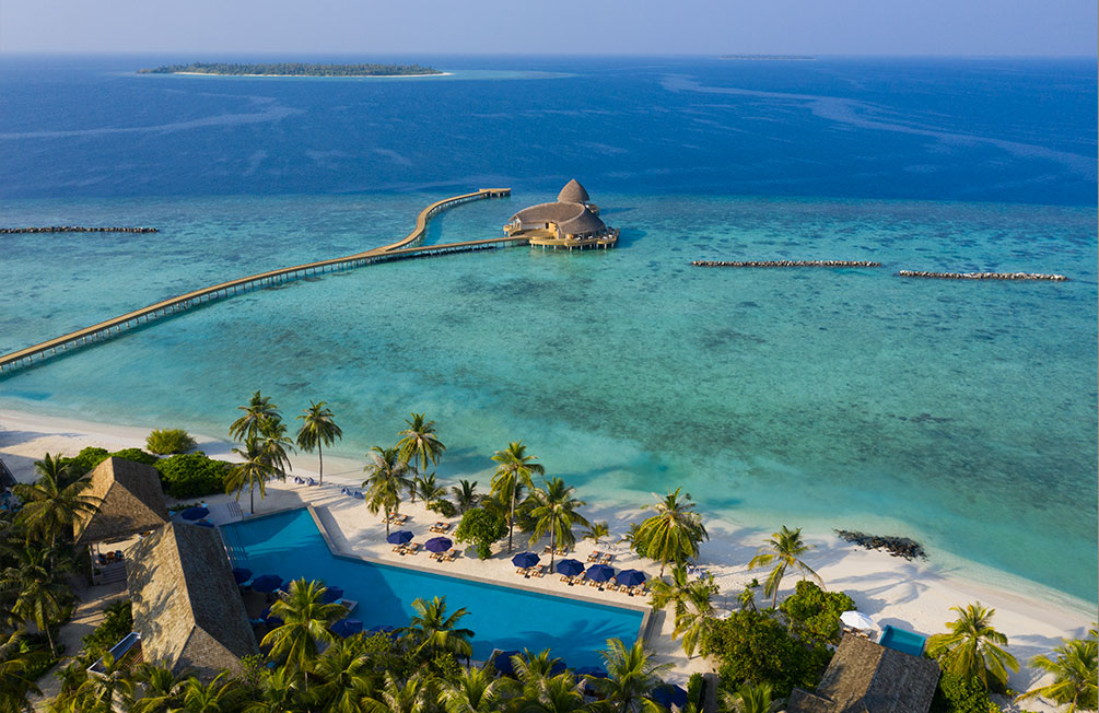 Accommodation: 80 contemporary luxury villas on the Indian Ocean. In addition, there is a complex of 5 restaurants, various gastronomic offers, 2 bars and a spa with 8 treatment rooms located in cabins on stilts. As a bonus, there is a fitness centre equipped with the latest professional Technogym machines. Good news, you can bring your children of all ages! The resort has a kids and teens club, the Dolphin Kids Club, where a fun and educational programme is offered.