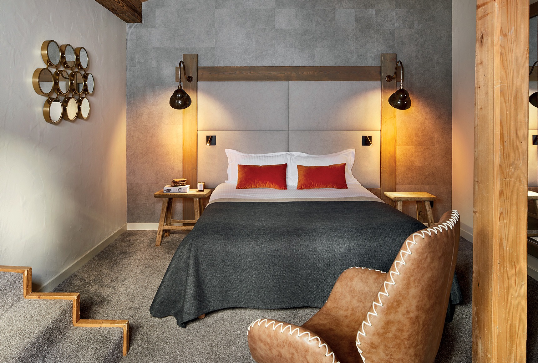 Nostalgie des cimes. Nul doute, les espaces offrent un cadre naturel propice à la détente et à l’évasion. Les chambres de 20 à 144 m2 conviennent à tous types de séjour, que l’on soit en couple, en famille ou entre amis. Et partout des détails subtils symbolisent la haute montagne. Celle d’autrefois… Fleurs Edelweiss, paires de skis anciens, plaids en laine moelleux. L’atmosphère est douce, réconfortante. Jusqu’au spa « Deep Nature », doté de tout un confort fitness et de bien-être décliné autour du bois. Le plus ? Des navettes qui permettent d’accéder aux pistes de ski. Et aux envies pressantes de shopping. Incontournable, entre un chocolat ou un vin chaud au Hibou Blanc, l’achat d’un fuseau chez AAllard, (le créateur du fuseau de ski en 1930), la boutique mythique qui porte fière l’enseigne et la tradition en plein centre du village !