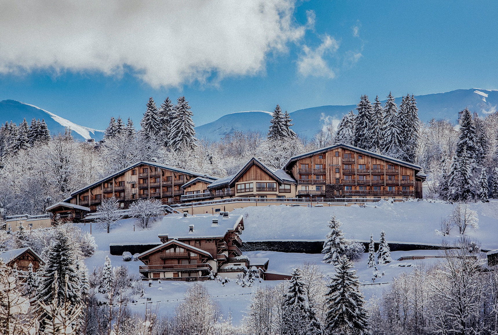 Accroché au massif du Mont d’Arbois, cet hôtel quatre étoiles, moderne et chaleureux, domine le village de Megève.