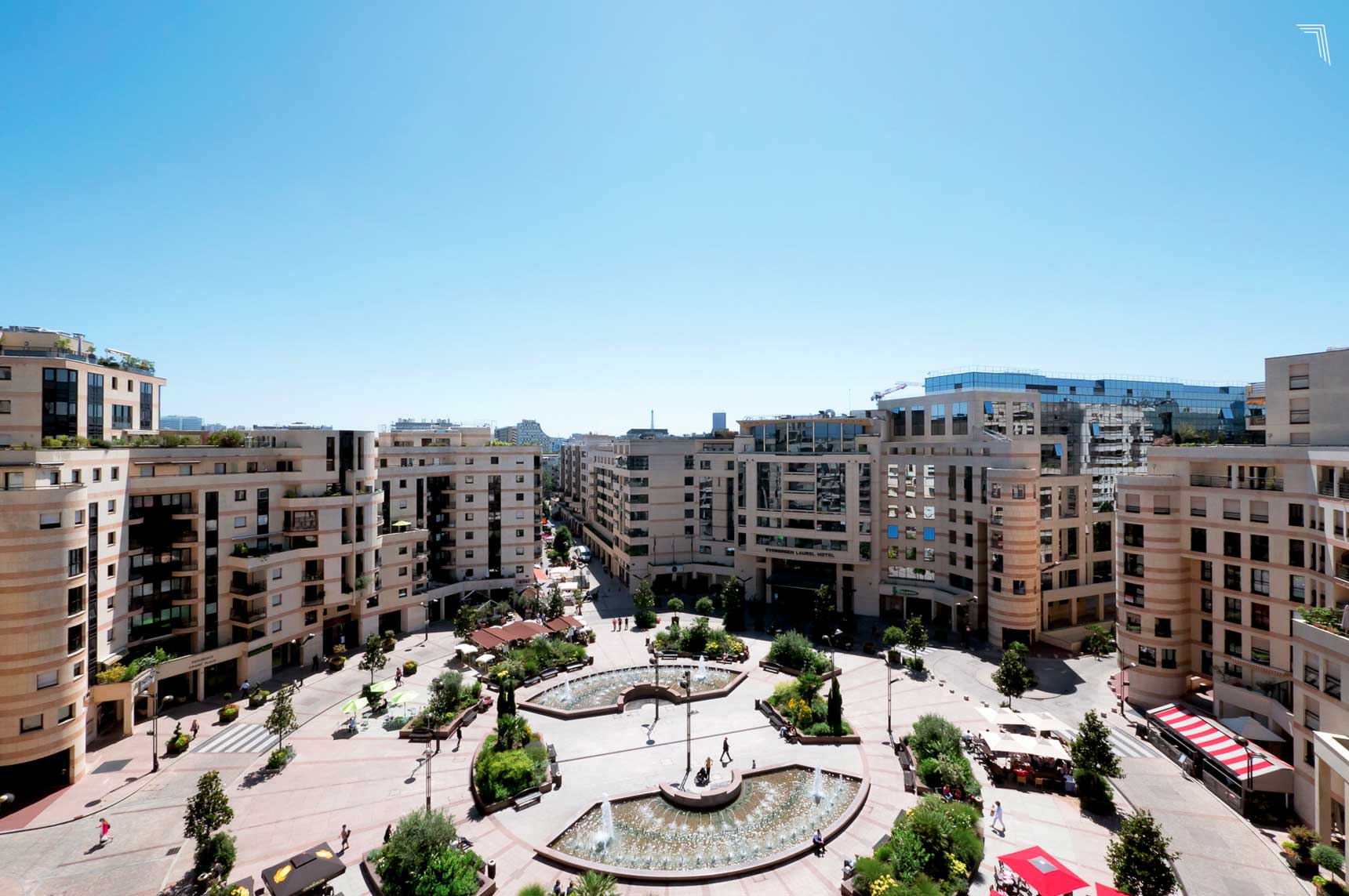 Les immeubles récents de la très prisée Place Georges Pompidou à Levallois-Perret.