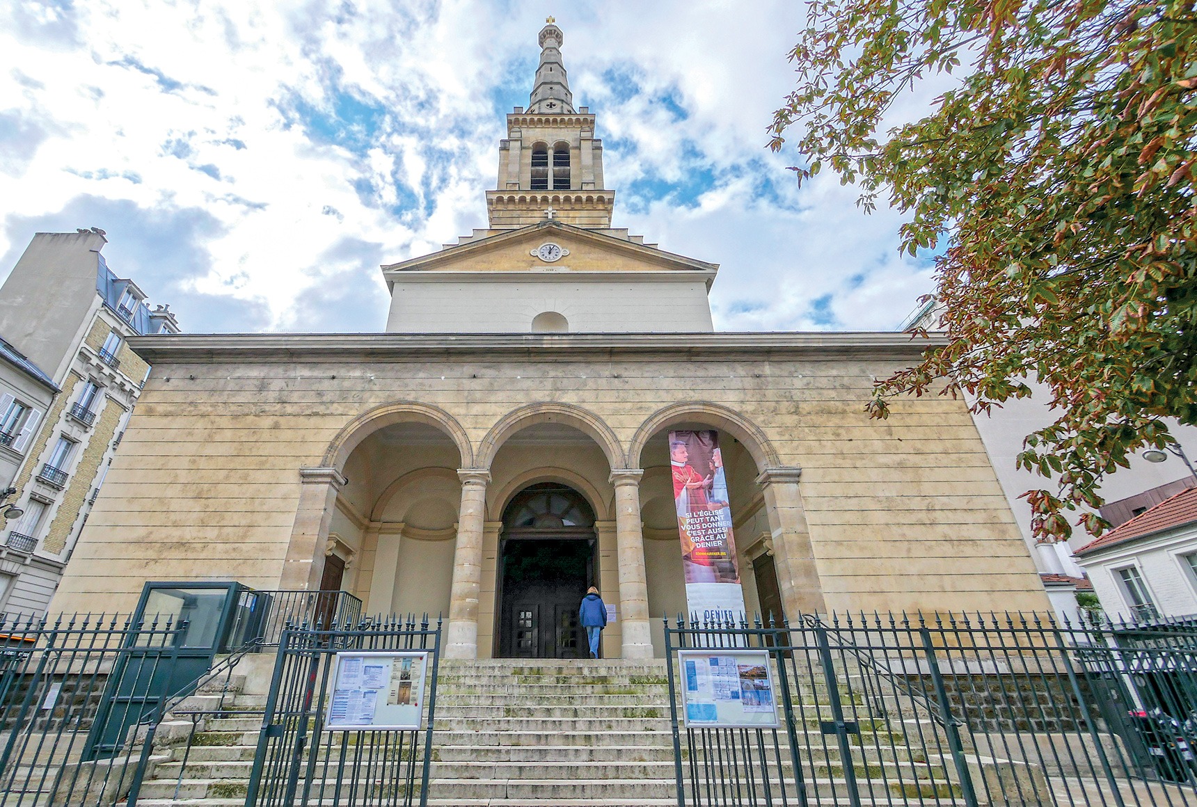 Face à la rue du Commerce, l’église Saint-Jean-Baptiste de Grenelle marie les styles néo-roman et néo-gothique.