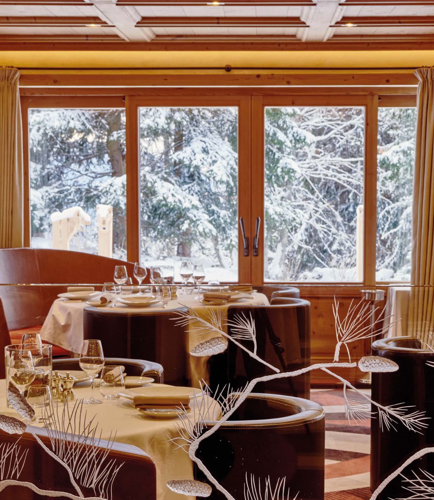 Un chef au firmament. Le chalet Ève intègre le restaurant « Prima », dirigé par un jeune chef talentueux, Nicolas Hensinger. Récemment récompensé d’une étoile Michelin, ce poète des fourneaux puise son inspiration dans la nature, dans ses racines familiales, ainsi que dans la montagne qu’il parcourt régulièrement avec son équipe pour y cueillir des herbes aromatiques. Après un passage à l’Auberge de Shoenenbourg, au restaurant Le Chambard, puis au Meurice et à l’Hôtel de Ville de Crissier, Nicolas souhaite apporter des lettres de noblesse au Mont d’Arbois, si tant est qu’il en soit nécessaire. Rothschild oblige, le meilleur est déjà acquis !