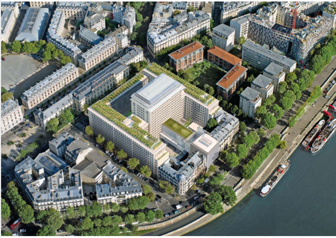 Hauteur : 56 mètres et 16 étages. Tour de taille : 43 600 m2. À deux pas de l’île Saint-Louis et de la place de la Bastille, le plus gros bébé du concours d’urbanisme « Réinventer Paris » (2014), fait enfin ses premiers pas. Ne rien démolir. Densifier en gagnant au passage 3 500 m2 supplémentaires. Tel est le concept de cette refonte d’envergure, spectaculaire métamorphose de l’ex préfecture de la Seine. Austère bâtiment des années 1960 hébergeant autrefois des services administratifs notamment la direction de l’urbanisme.