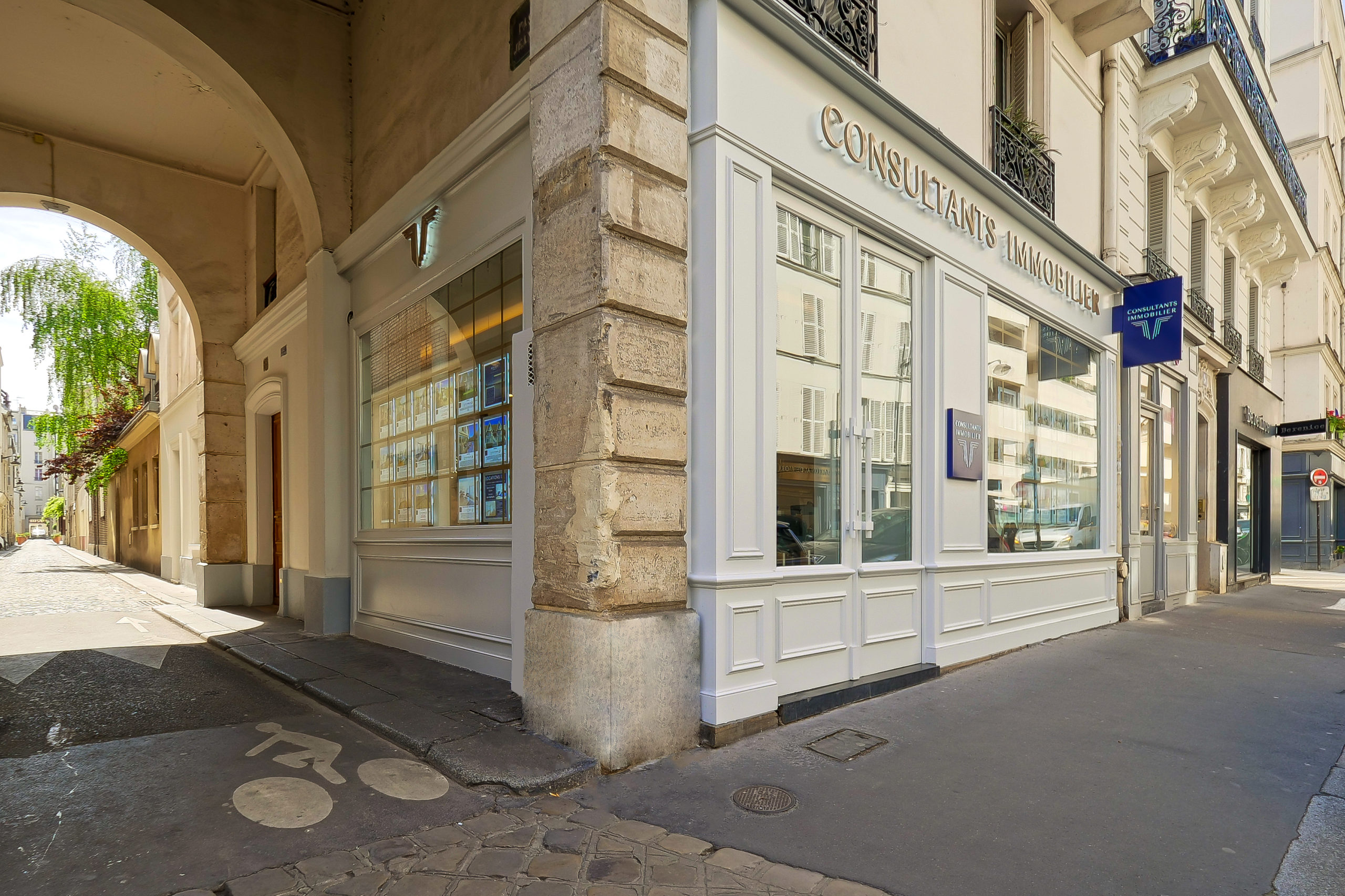 La nouvelle nouvelle agence Consultants Immobilier rue Saint-Dominique au numéro 89. Sur le trottoir impair et au coeur de cette artère longue de 2 kilomètres, à l’angle du passage Jean Nicot d’où l’on rejoint la rue de Grenelle, à mi-chemin entre le boulevard de la Tour Maubourg et l’avenue Bosquet. À l’extérieur, une façade de couleur blanche innove par rapport au bleu caractérisant les autres devantures d’agences Consultants Immobilier.