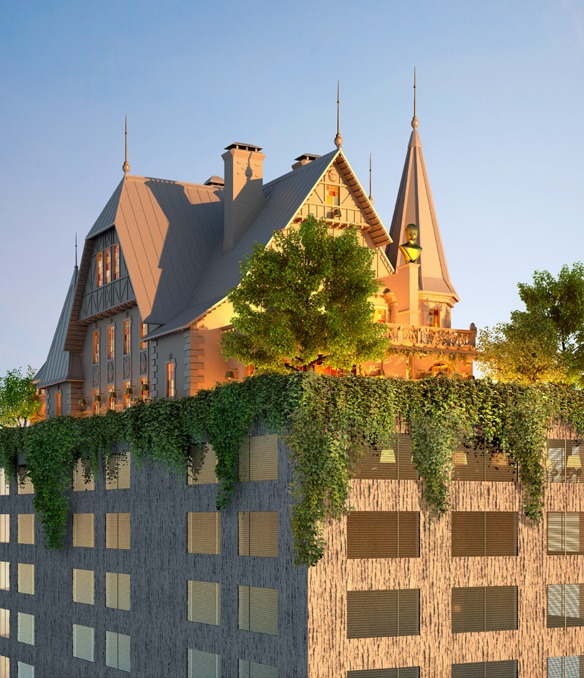 A Metz, la «Maison Heler» : un hôtel Hilton de dix étages, coiffé de la réplique d’une maison bourgeoise messine à pans de bois, une folie architecturale.