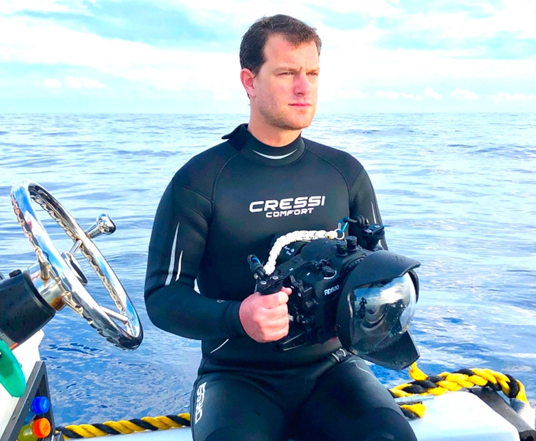 Mais ne vous fiez pas à l’apparence de ces frêles esquifs qui, une fois entrés en action, se révèlent particulièrement adaptés aux conditions maritimes, parfois rudes, de ces contrées lointaines balayées par le vent ». Sous l’eau, le perpétuel ballet de poissons tourbillonne sans cesse dans une chorégraphie anarchique pourtant bien réglée. « Attaque ou défense, le jeu collectif est la botte secrète des bancs de Carangues argentées. Qu’il soit de bonne ou de mauvaise humeur, le Priacanthe de Zanzibar voit toujours rouge et ne peut s’empêcher de vous faire les gros yeux. Et gare à ne pas trop s’approcher des dents acérées de la murène-dragon qui porte si bien son nom. Ici, on regarde, mais on ne touche pas ! » avertit notre solide homme-grenouille, digne héritier d’Aquaman. A l’image du super-héros américain de DC Comics, dont le destin est d’unir deux mondes opposés, Rodolphe nous rappelle que l’homme doit tout mettre en œuvre pour préserver ce chef-d’œuvre plus que jamais en péril : notre écosystème aquatique, aussi unique que fantastique.