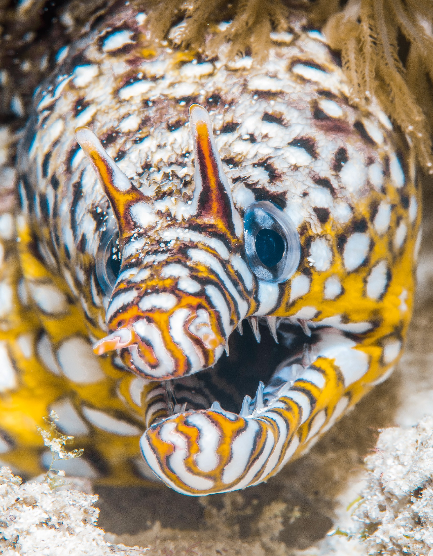 Prudence, pour tirer le portrait de la murène-dragon !
